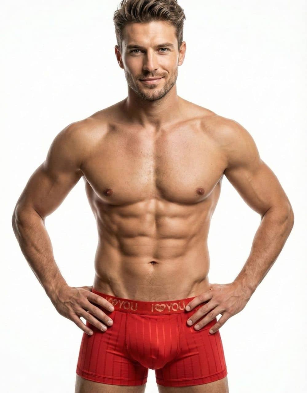 Мъжки боксер с външен ластик. Мека еластична материя подчертаваща мъжкото тяло. Състав: 90% полиамид, 10% еластан.